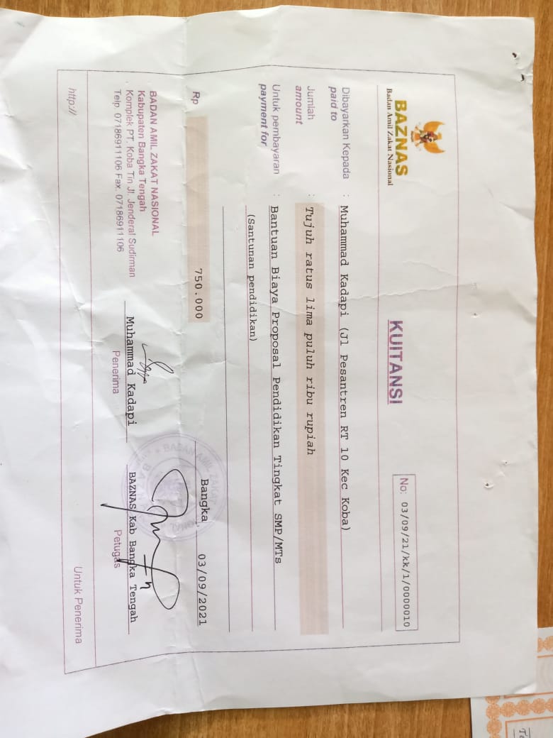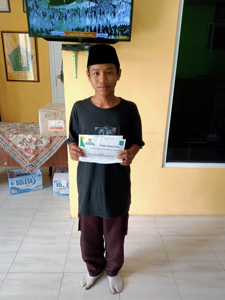 Penyerahan dana bantuan Baznas untuk Muhammad Kadapi kelas 7b