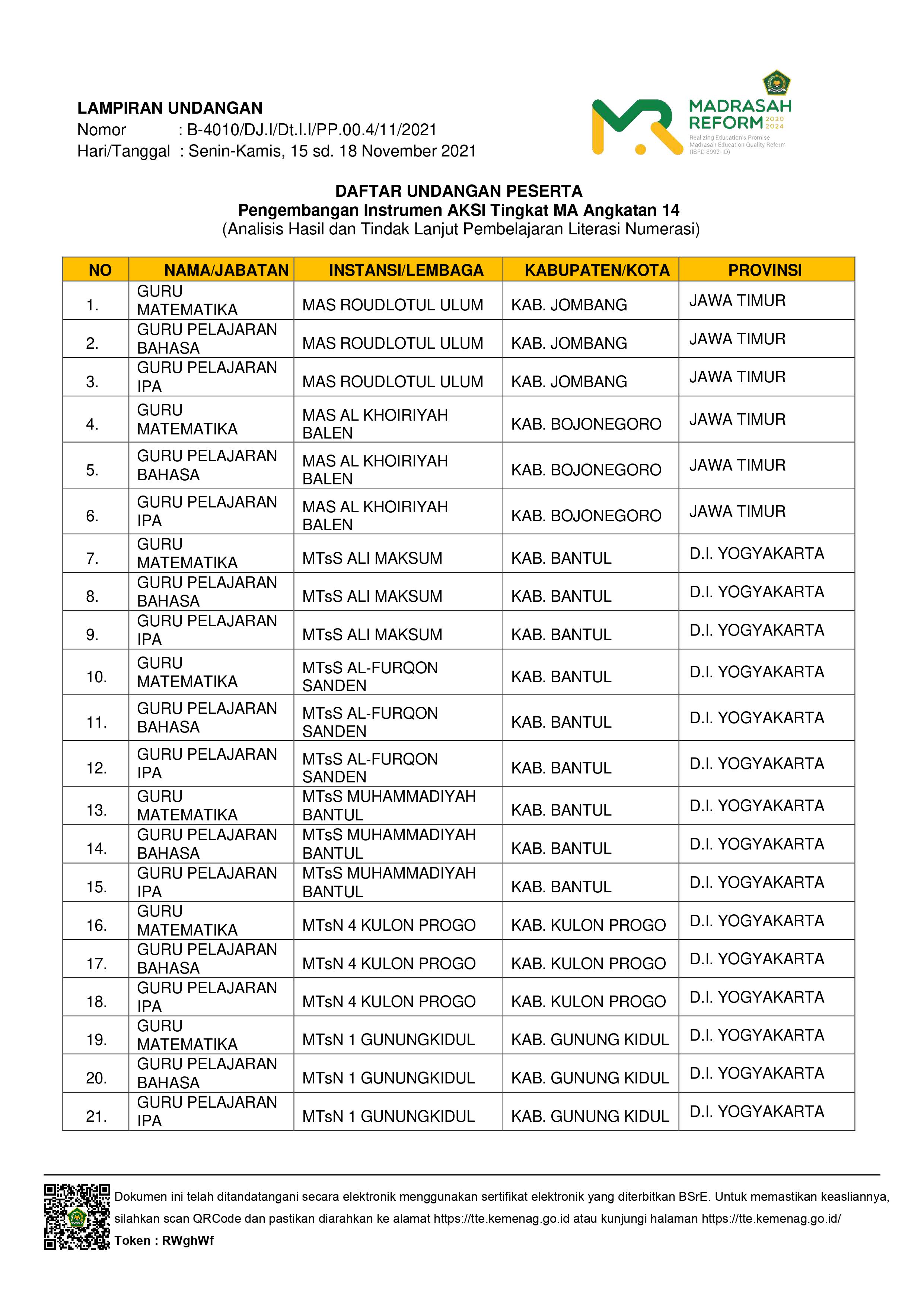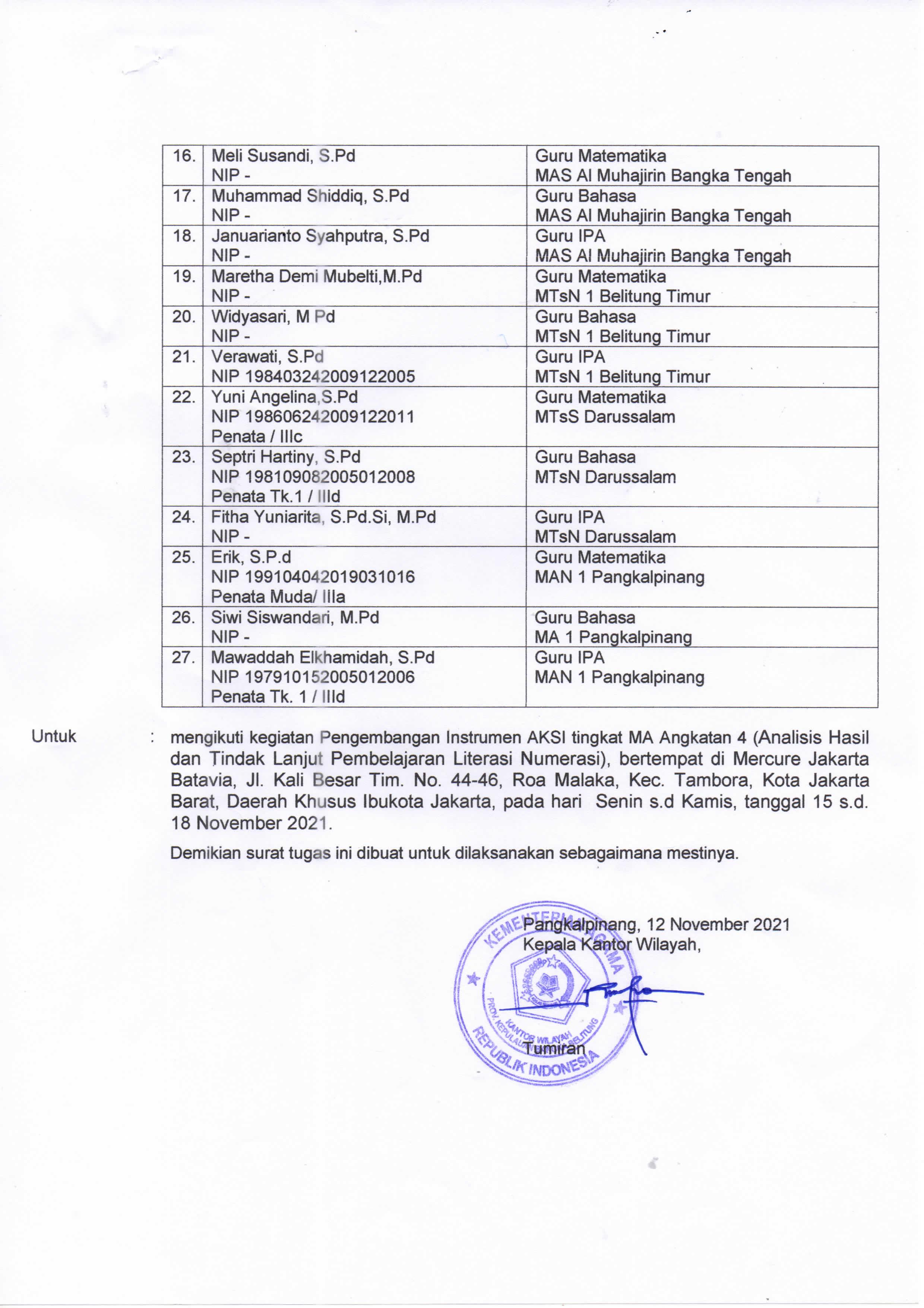 Guru-Guru MA mengikuti Pengembangan Instrumen AKSI tingkat MA Angkatan 14 dari KEMENAG